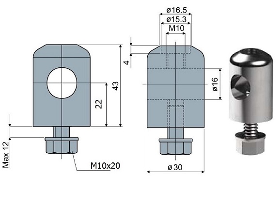 Materiał: Łącznik i śruby ze stali nierdzewnej AISI 304.