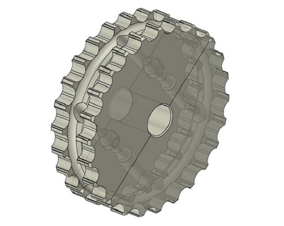 Opis: 21 zębów, dzielone, skrawane, otwór pilotażowy fi 20. Możliwość powiększenia średnicy otworu i wykonania kanału pod wpust Materiał: Poliamid, kolor naturalny.