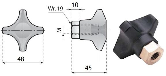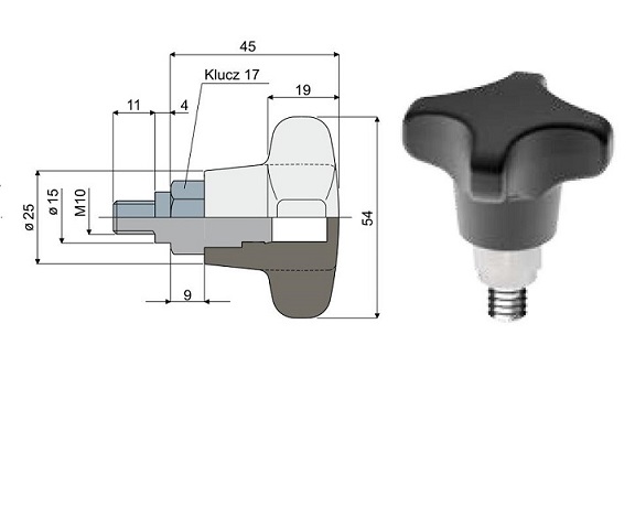 Pokrętło wzmocnione z gwintem zew M10x11.