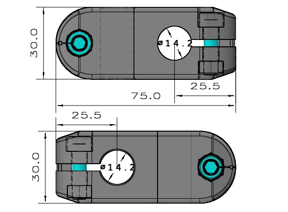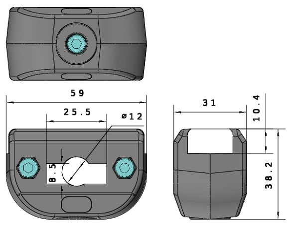 Materiał: Wzmocniony poliamid, kolor czarny. Śruby i nakrętki ze stali nierdzewnej AISI 304.