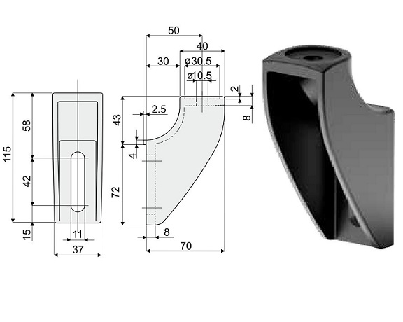 Materiał: Wzmocniony poliamid, kolor czarny. Śruby i nakrętki stal nierdzewnej AISI 304.